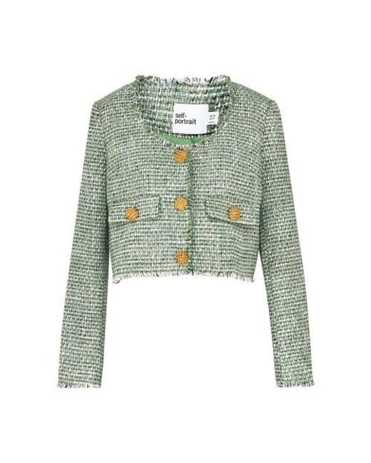 Self Portrait Green Boucle Cropped Jacket Lyst