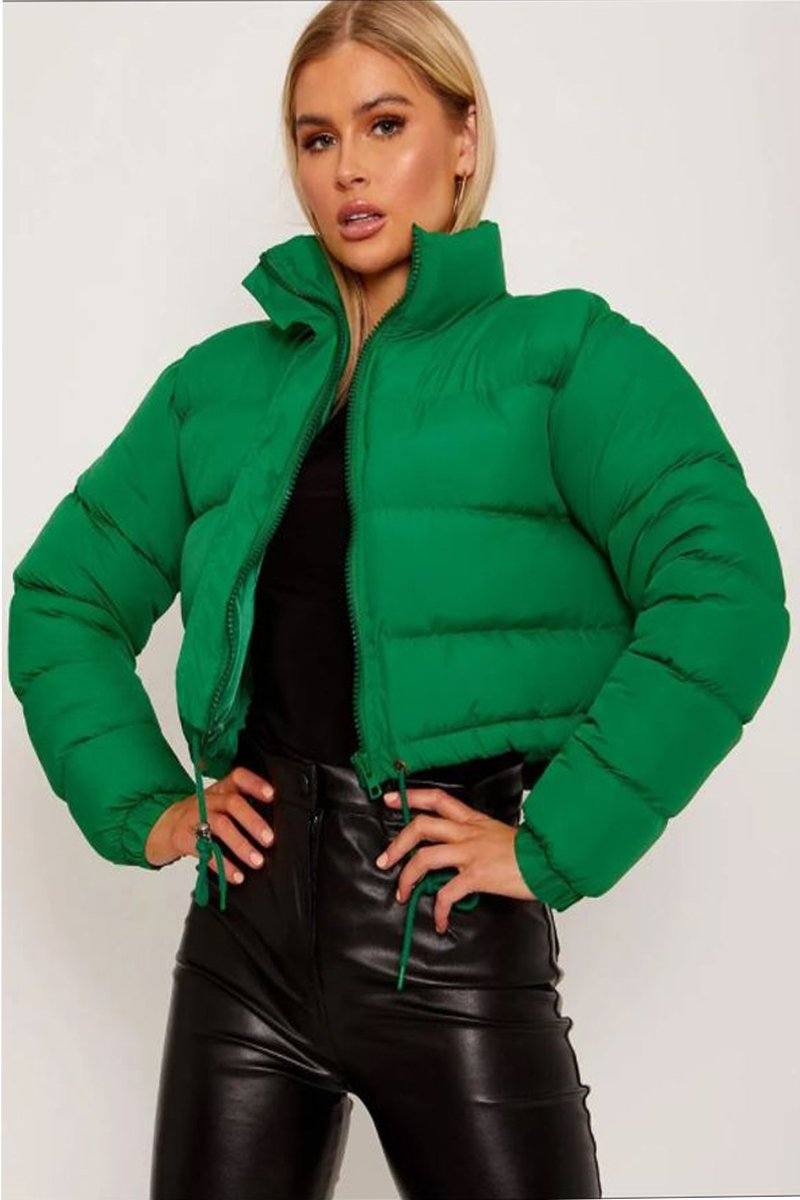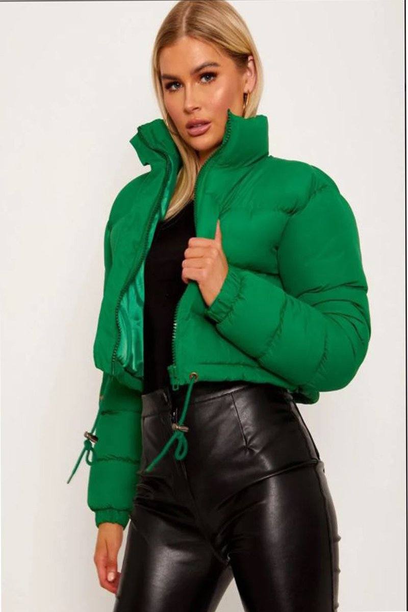 Green Cropped Puffer Jacket Entire Desire