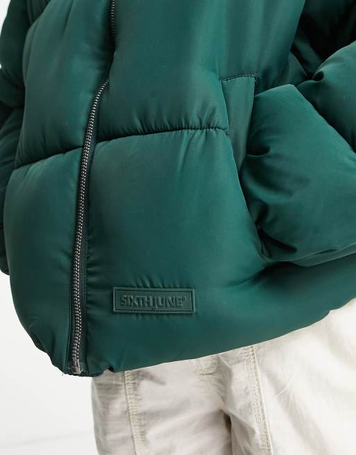 Sixth June Cropped Boxy Puffer Jacket In Forest Green Asos
